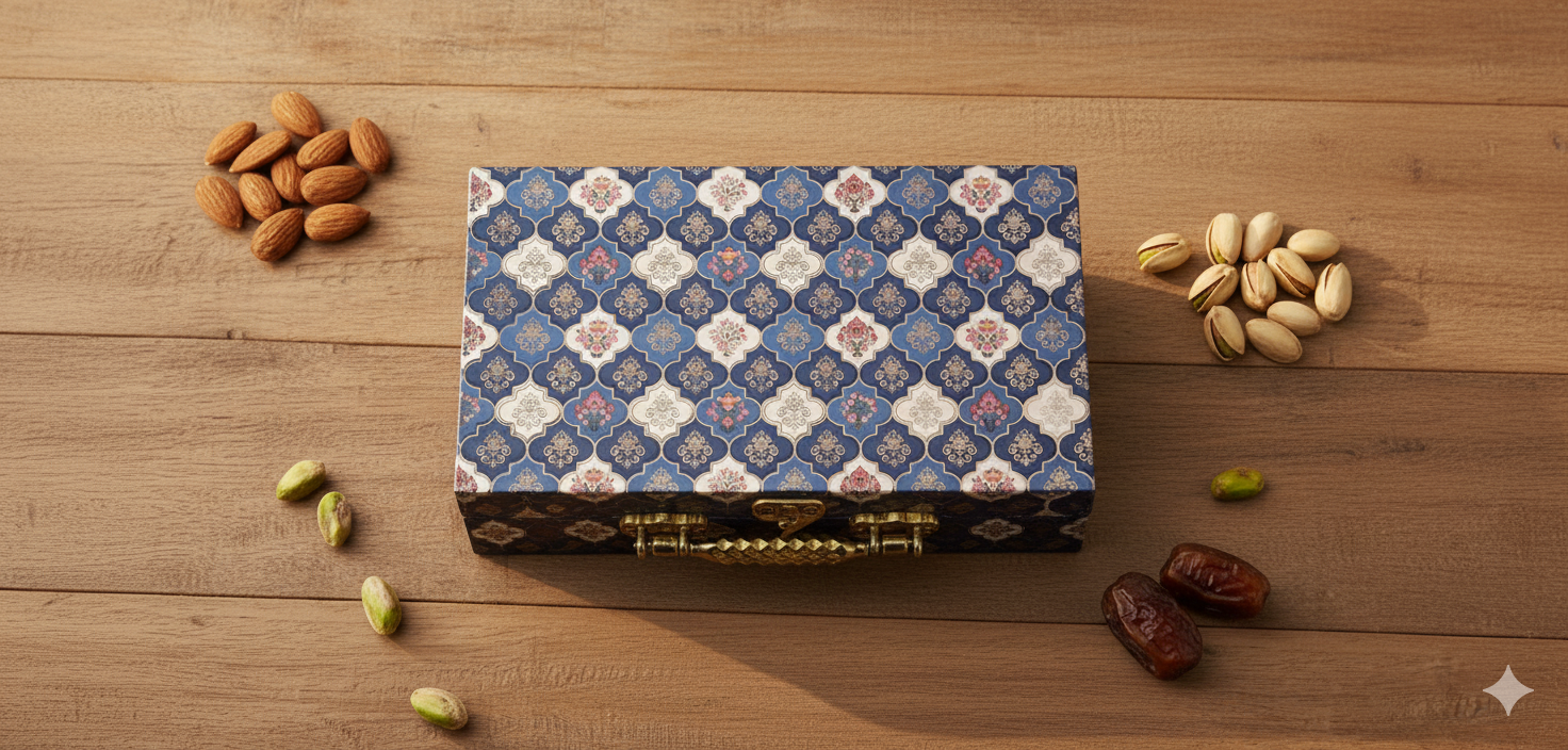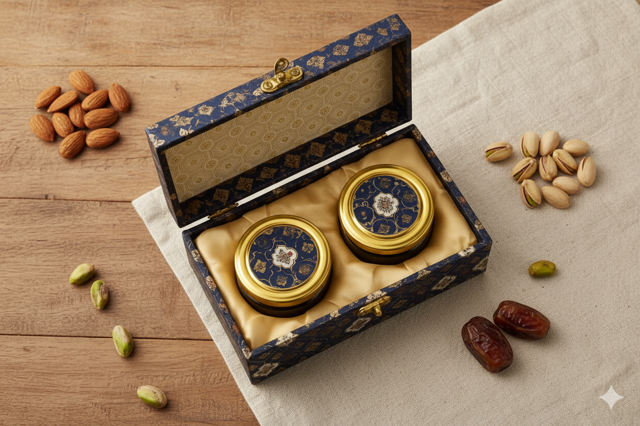 Grab this Festive Dry Fruit Box with Two Glass Jars.